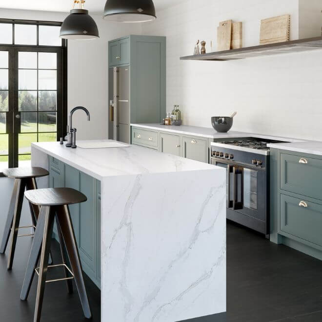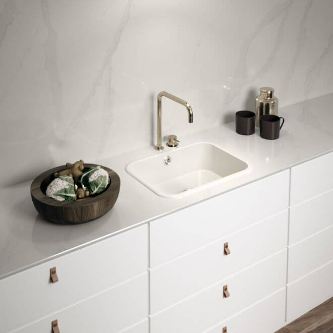 Presenting a captivating colour palette, Eternal Calacatta Gold features a white background adorned with graceful, expansive grey highlights interspersed with unexpected golden glints. This exquisite surface pays homage to the timeless beauty of marble, revered since ancient times for its distinguished appearance. Eternal Calacatta Gold captures the essence of this revered material and elevates it to new heights, offering an enduring and sophisticated presence that adds a touch of timeless elegance to any space.