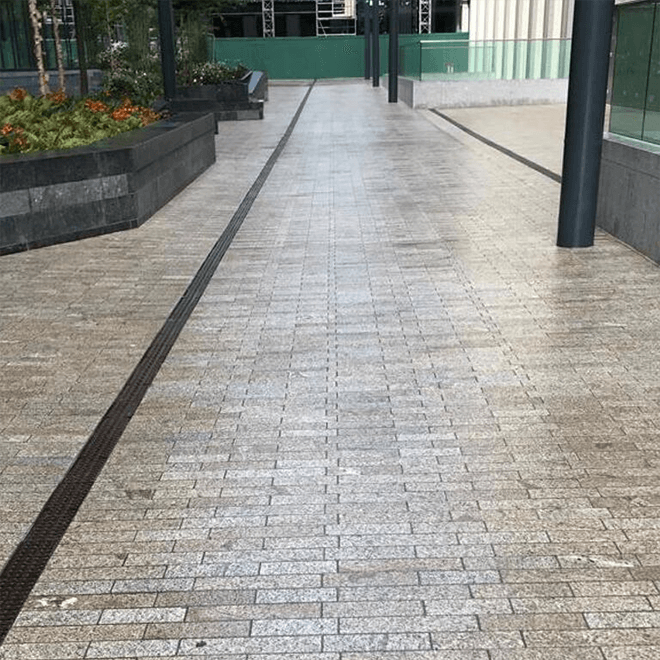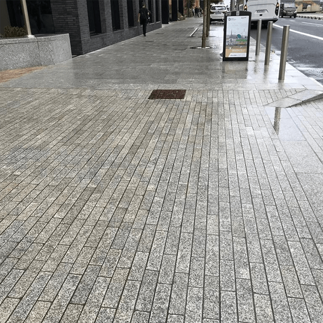 One of the most resilient stones on the market, Granite absorbs heat better than any other stone, which is why we use it for commercial pavement. There is also versatility in the colours so that each block has its own unique style to it, giving it a sophisticated look.