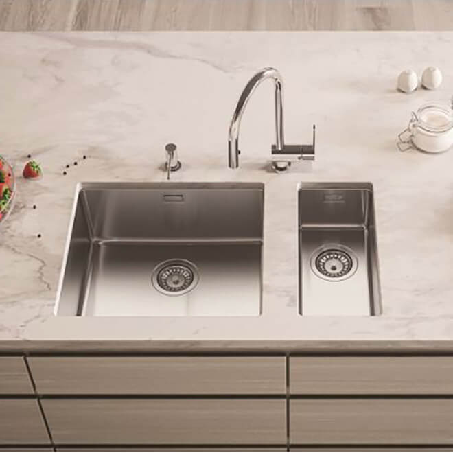 Carresi is a Dutch company that excels in innovations and bringing exciting designs to the European market. One of the focus points of these sinks is that they come with a PowePlug, which means that any waste that finds its way into your sink is caught by the plug and can be removed, so you no longer have to worry about a build-up of food or harmful bacteria within your sinks. With extra deep options of Carresi sinks, these have everything you need to create the perfect kitchen space.