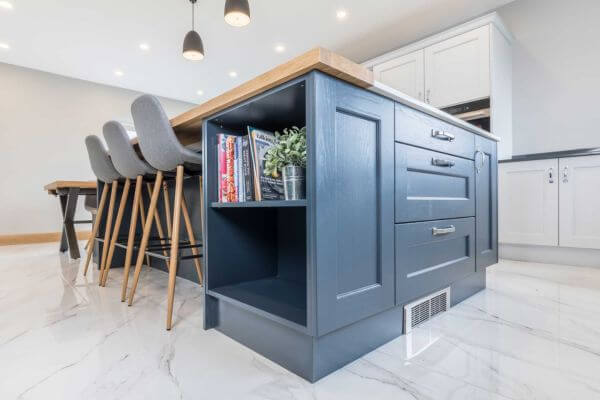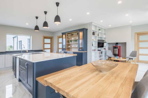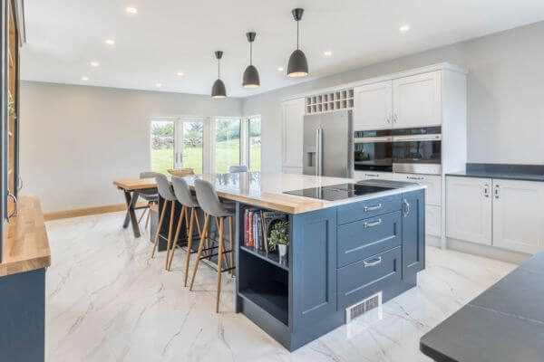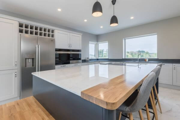 Renowned for their bespoke handcrafted kitchens, Trevor McDonnell Kitchens designed this beautiful kitchen featuring our Dekton Tundra countertop on the island. The addition of a solid oak breakfast bar further enhances this stunning centerpiece.